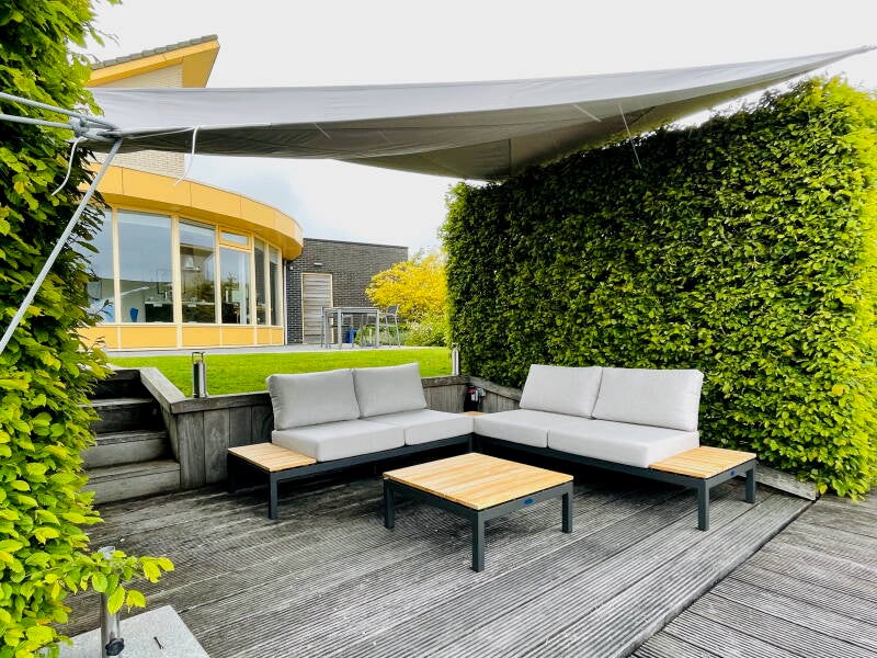 Voor duurzame schaduwoplossingen werken wij met schroeffundamenten en aluminium profielen. Dit is sterk, esthetisch mooi en duurzaam.